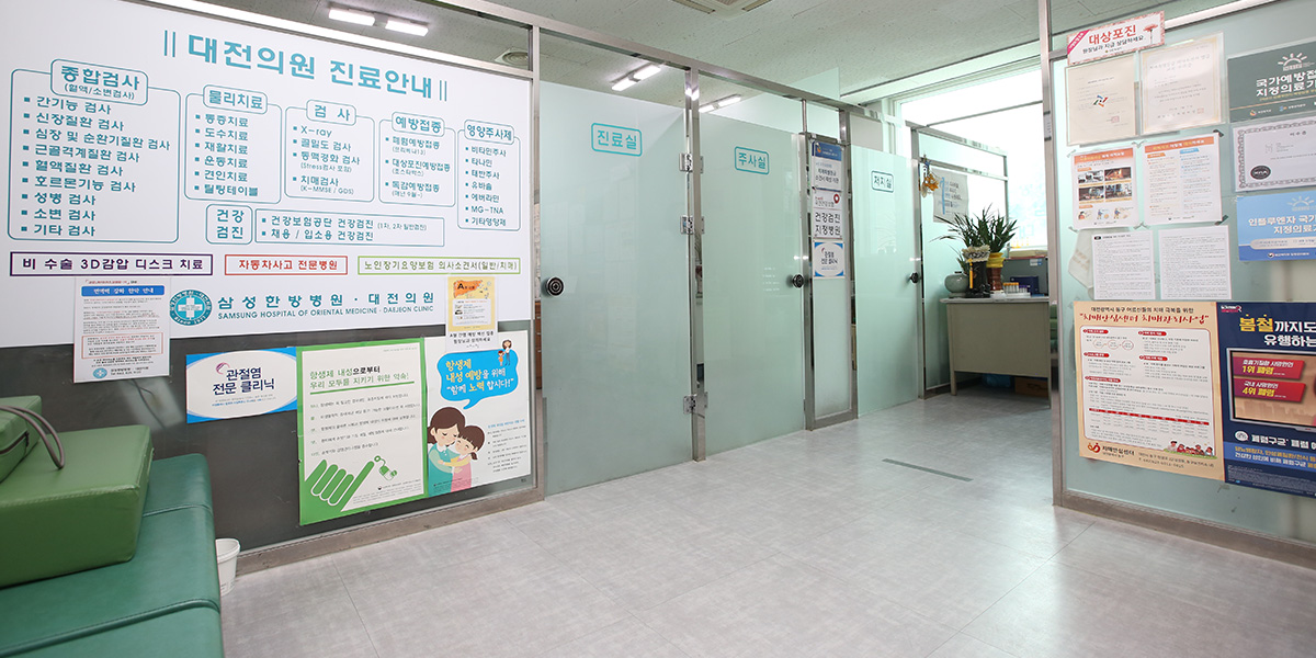 원무과 / 한방1과·1침구실 / 한방2과·2침구실 / 대전의원 방사선실·골밀도검사실 / 예진상담실·건강검진실 / 관리과 |