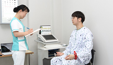 내원시 간단한 설문지 작성과 함께 원장님의 문진 설진 맥진 촉진등 진료를 통해 담적증의 경중과 입원치료 여부를 결정합니다. 이후 동맥경화·스트레스검사를 통해 교감신경과 부교감신경의 불균형 정도와 혈관의 상태, 스트레스의 정도와 스트레스에 의한 신체반응을 평가하고 체성분분석을 측정하고 필요한 경우 양방협진을 통해 혈액검사 등을 실시 합니다.